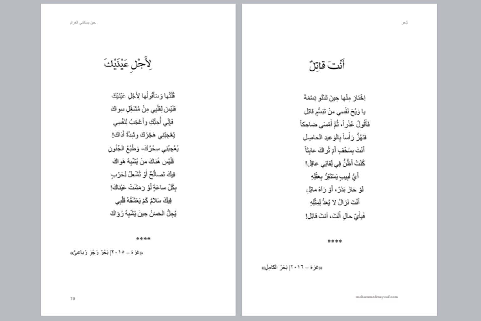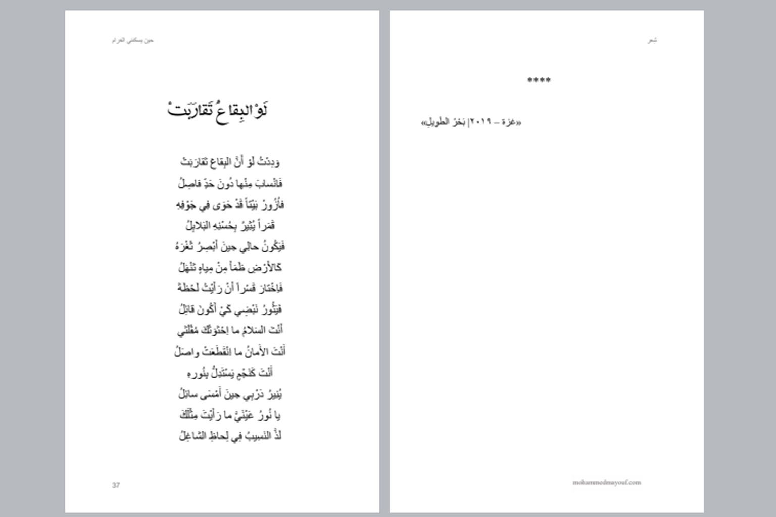 حين يسكنني الغرام ديوان شعر فصيح يقدّم تجربة غزلية عميقة، تتجاوز الصورة التقليدية للحب إلى فضاء إنساني أوسع، حيث يمتزج العشق بالذاكرة، والمرأة بالوطن، واللقاء بالفقد. كُتبت قصائد هذا الديوان في أمكنة متعددة—غزة، روسيا، النمسا—فحملت كل قصيدة رائحة مكان، وملمح زمن، ونبرة روح.